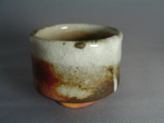 ぐい飲み 内側と外側の一部が穴窯焼成により赤く変化しています。