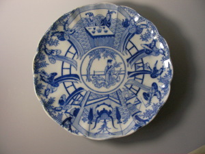 | 5446センチの大皿です。線描きで緻密に描かれています。 江戸後期 |