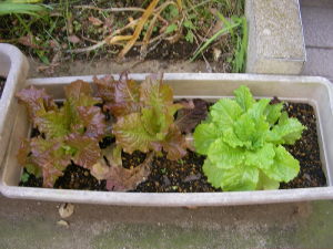 春菊と焼肉レタスがだいぶ大きくなってきました。