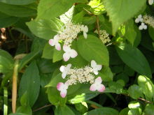 中・右:我が家では結構いろいろな種類のアジサイを植えてあります。